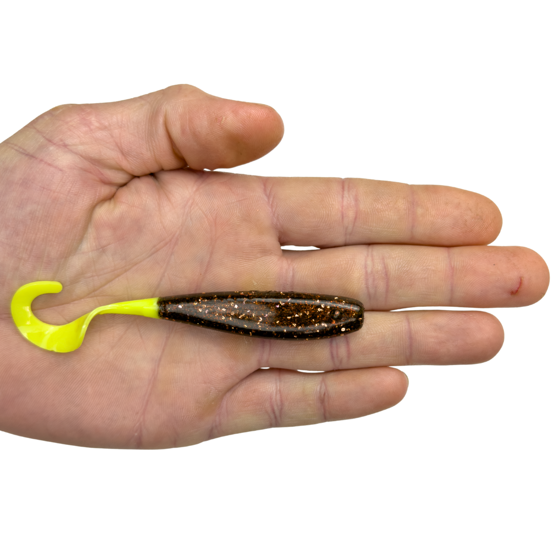 We sell 4 sizes in our curly tail jerkshads, 3", 4", 5.5" & 7"