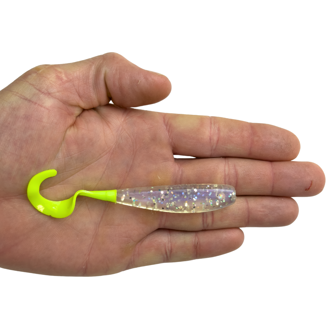 We sell 4 sizes in our curly tail jerkshads, 3", 4", 5.5" & 7"