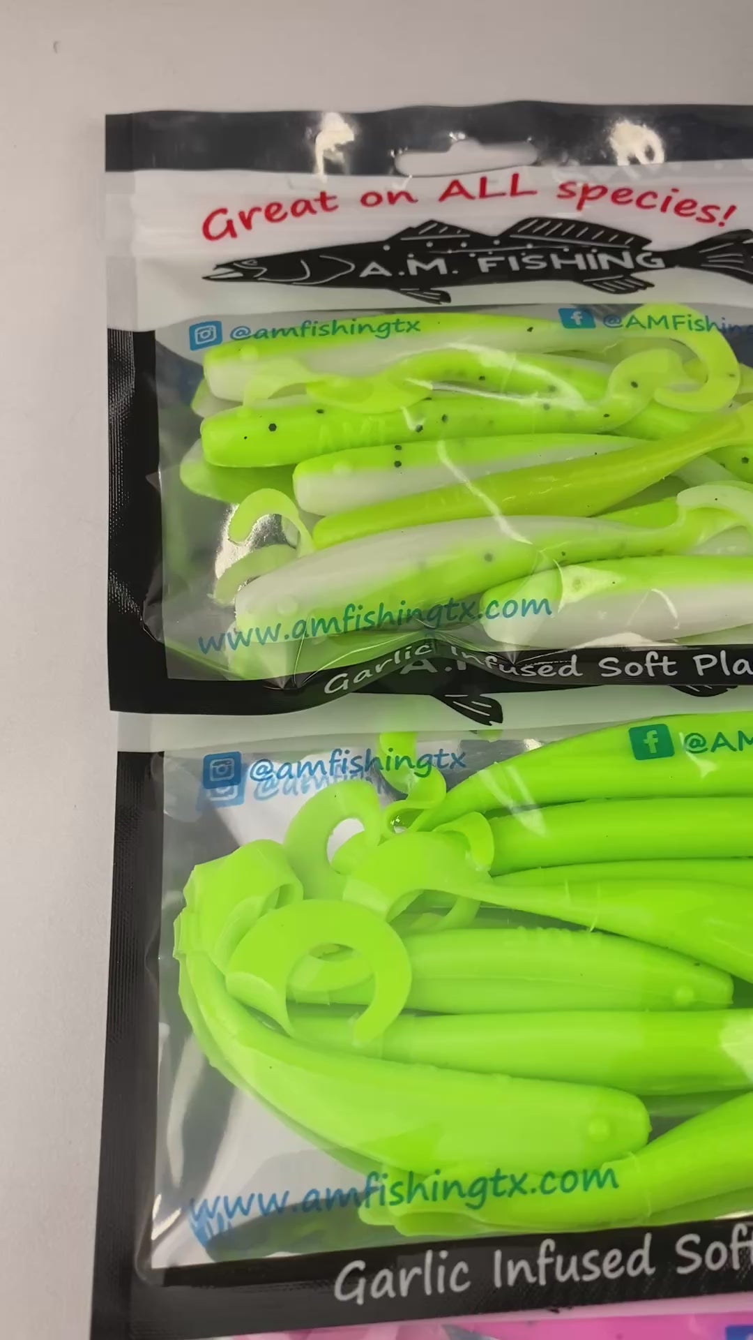 We sell 4 sizes in our curly tail jerkshads, 3", 4", 5.5" & 7"