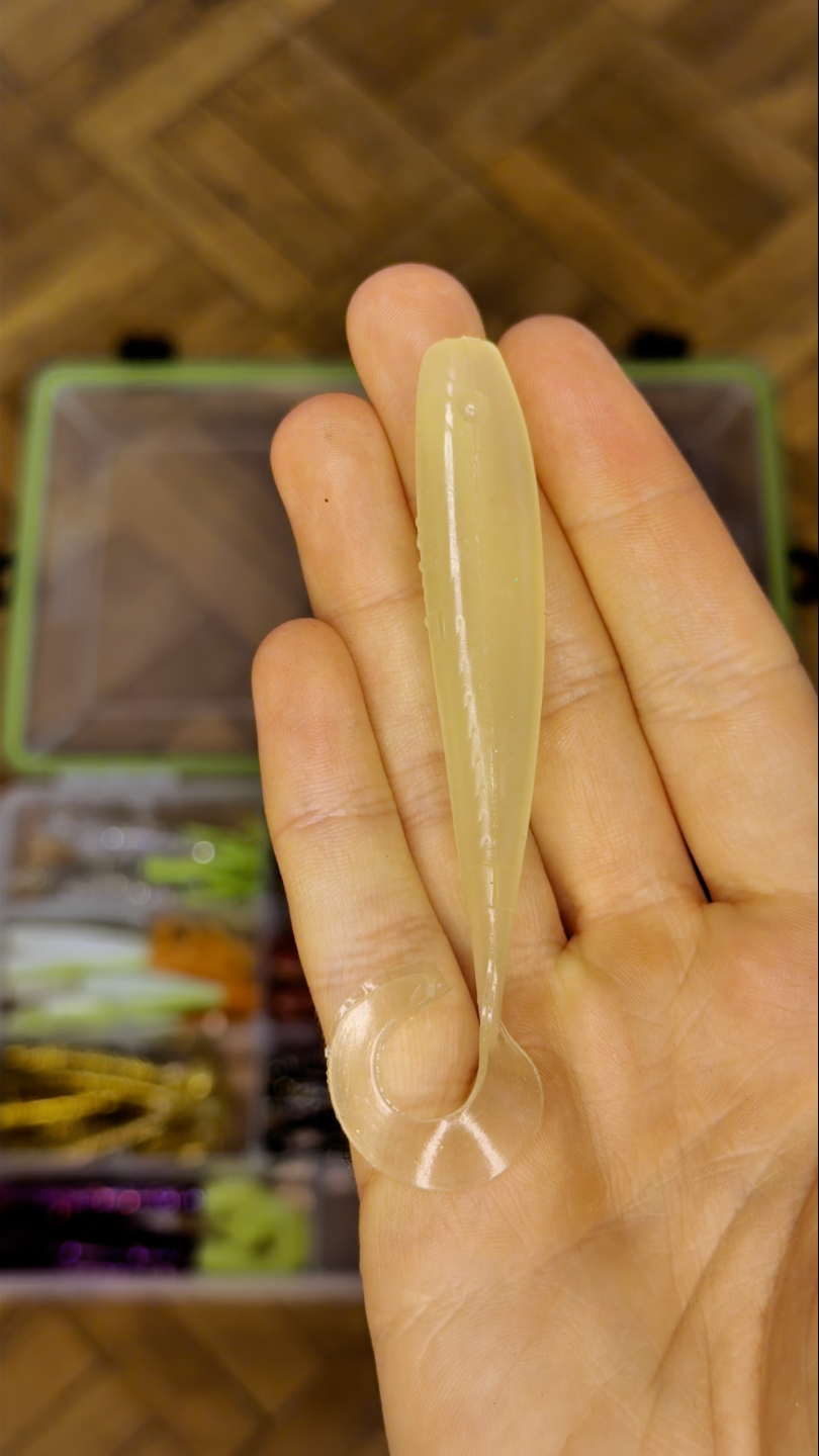 It’s a hybrid design. It has the erratic action of a jerkshad plus nonstop movement from a curly tail. It’s extremely versatile and can cover a lot of roles in your tackle box.