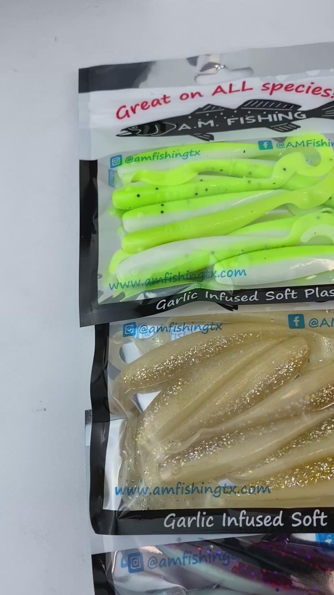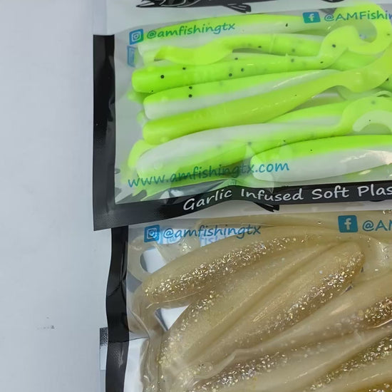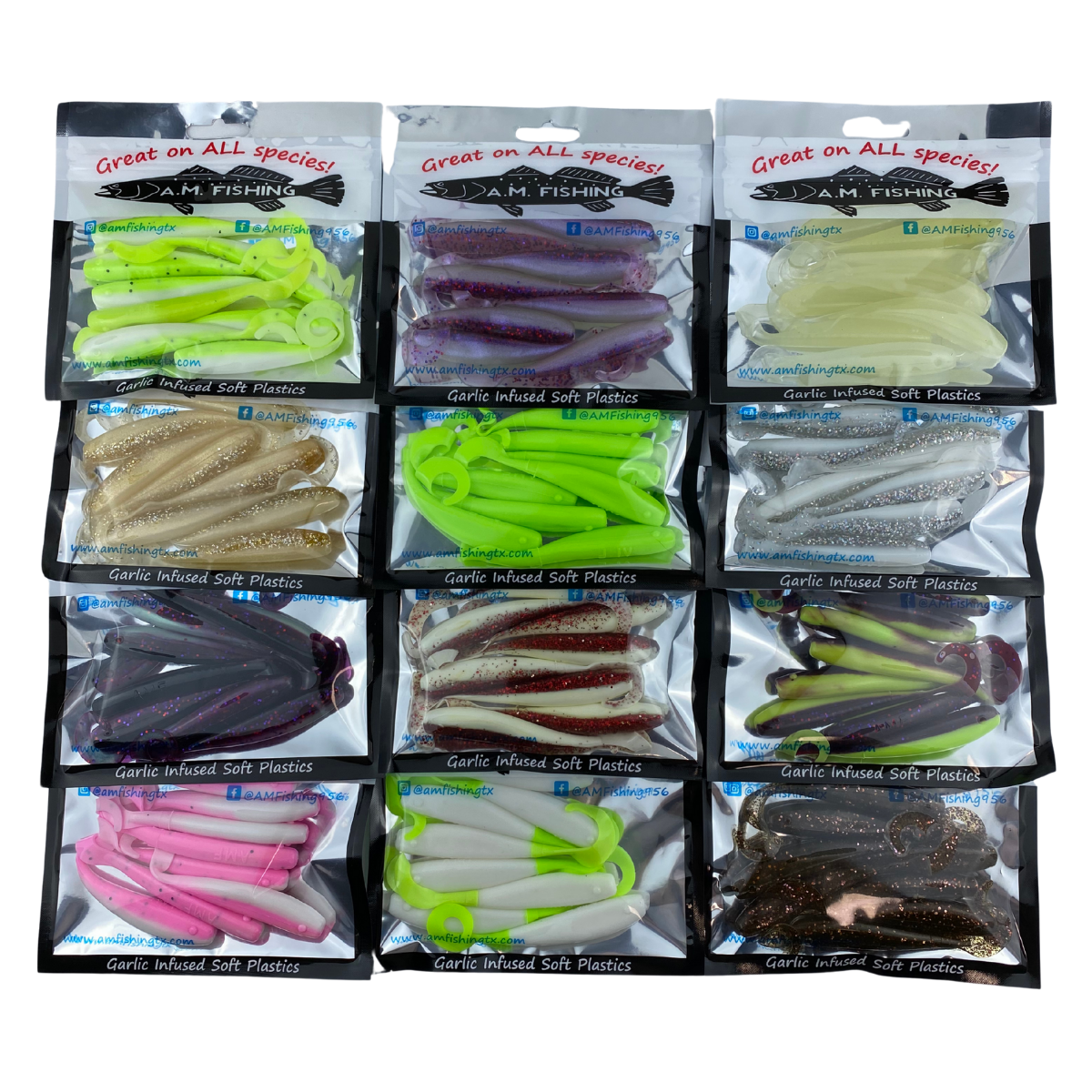 We sell 4 sizes in our curly tail jerkshads, 3", 4", 5.5" & 7"