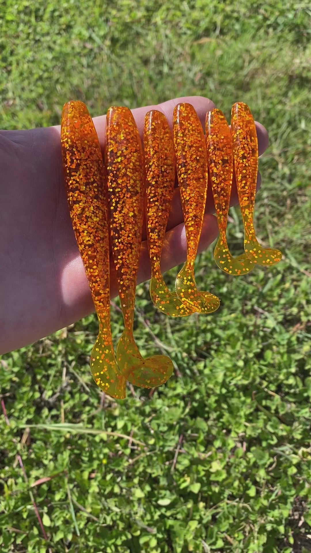 Fluorescent golden brown with yellow & orange glitter available in all sizes 3", 4", 5.5" & 7"